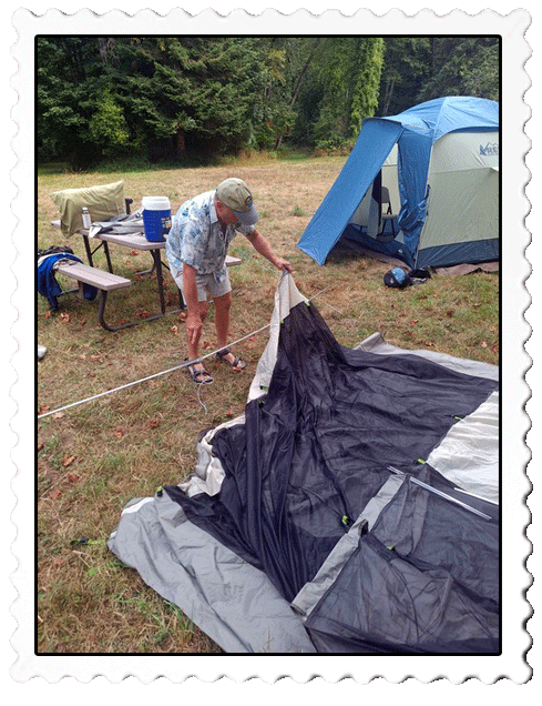 Bruce insisted that I do nothing until he could figure out how to set up the tent!